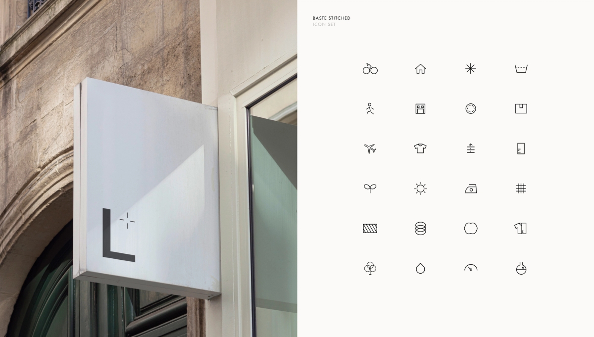 Elements like ‘baste stitching’ icons, originating from our new logomark, extend seamlessly to icon sets and UI in digital applications continually conveying the concept of -less and +more.