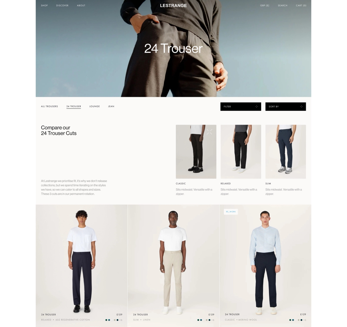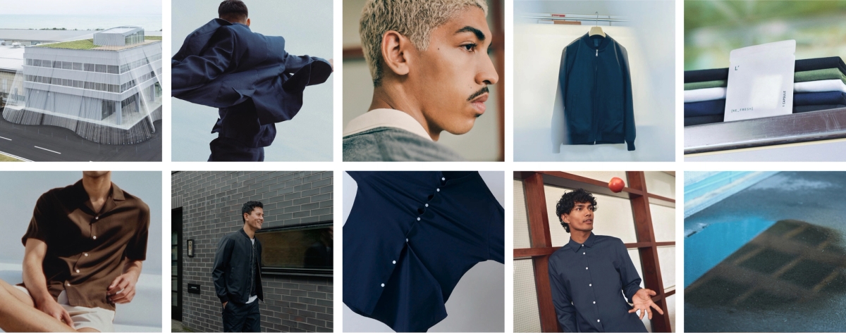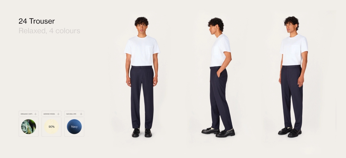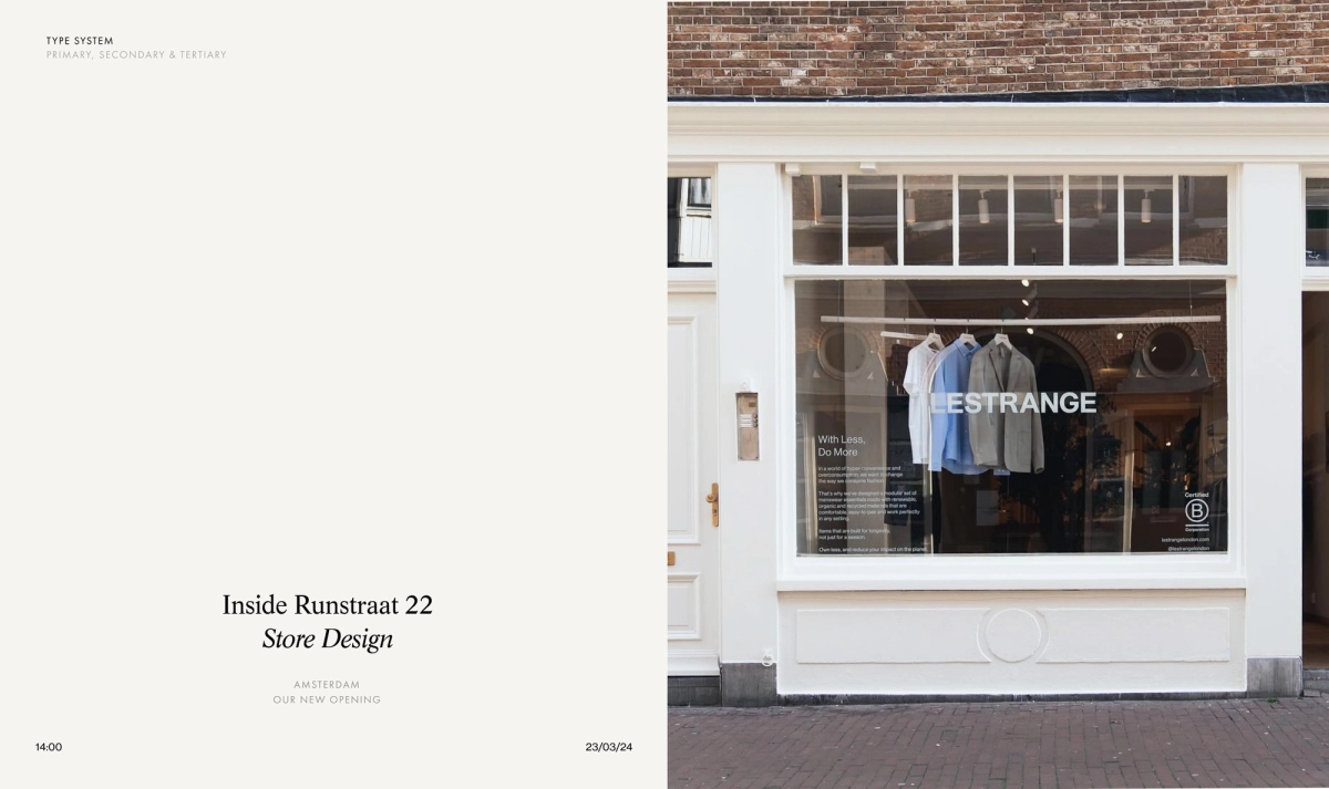 Taking inspiration from the modular approach of clothing that is so innate to Lestrange, we applied this as a fundamental in our design thinking. Our brand identity focuses on anchoring design elements such as ‘material swatches’, to give homage, to educate, and to make more obvious the brand’s purpose: in owning less pieces, and making them do more, at a higher quality.