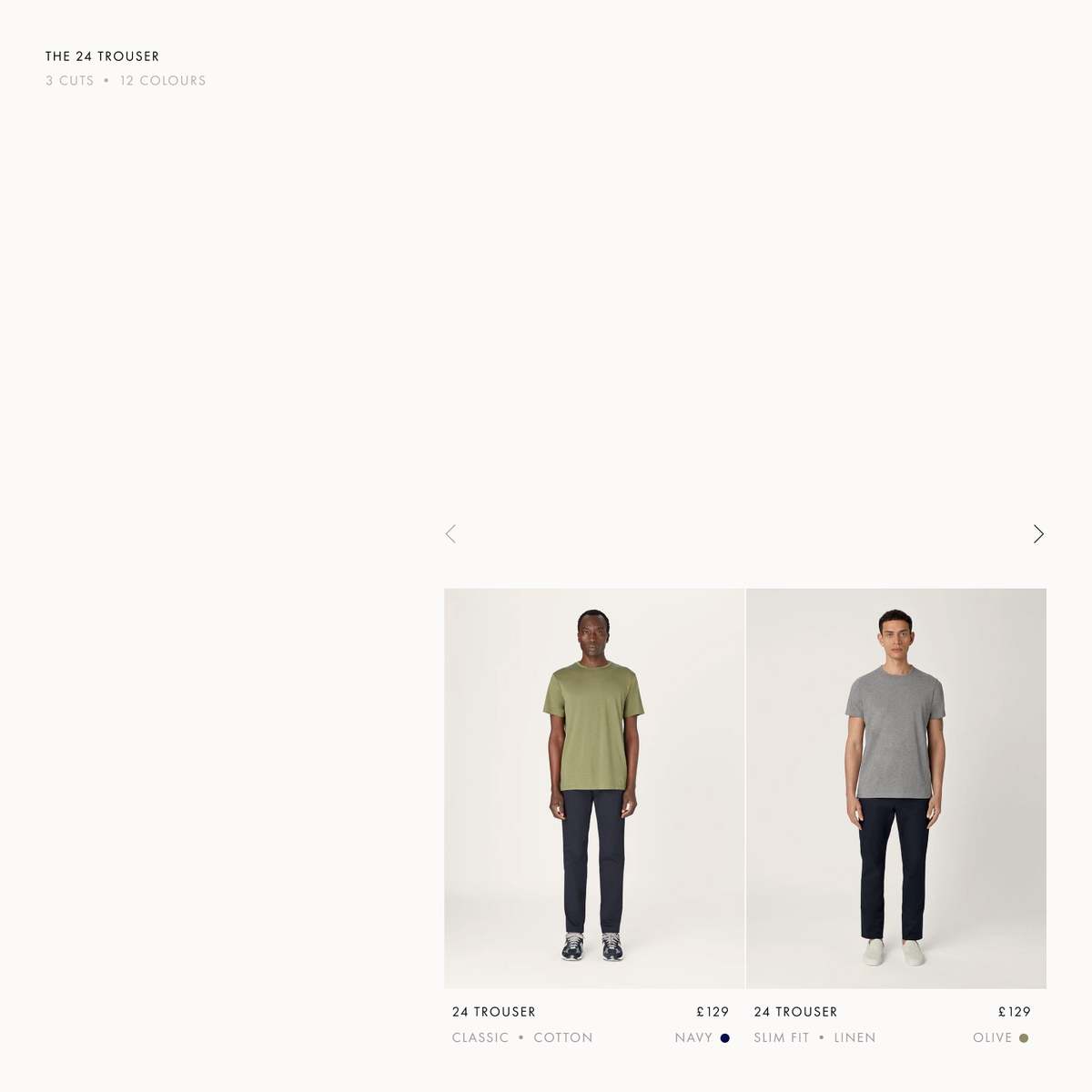 The concept of modularity here is expressed through a sequential direction where a string of ecommerce images can be placed next to one another and give an impression of frame by frame movement and walking.