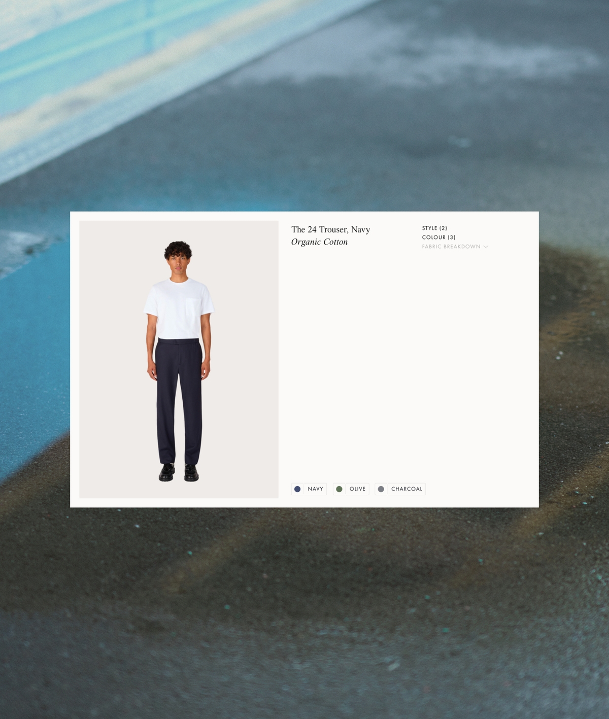 Material swatches serve as content opportunities, enabling the brand to showcase backend production processes and integrate impact-driven, environmentally textured photography. This allows for a more expansive and conceptually rich art direction.