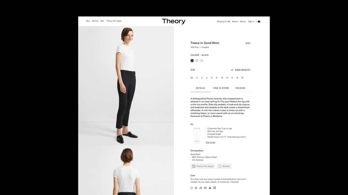 One-third of their revenue comes from purchases of trousers, making the ecommerce site more focused on the ease of purchasing different types of trousers and understanding materials and shapes.